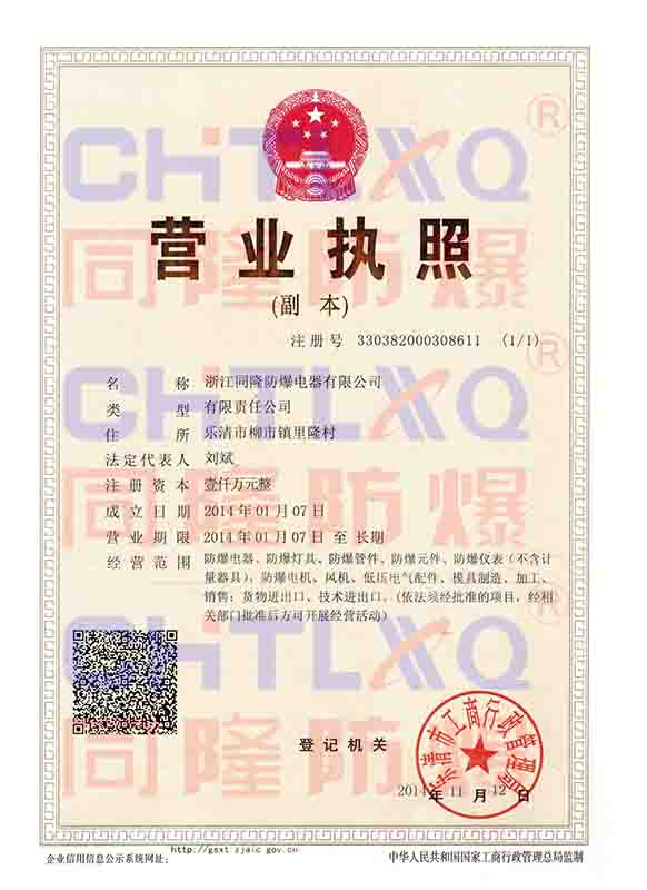 浙江同隆防爆電器有限公司 是一家以研發,制造,銷售,服務于一體的專業性防爆電器企業。產品覆蓋石油,石化,天燃氣,煤碳,軍工,釀酒,醫藥,冶金、船舶、公安消防及大型化工企業領域。